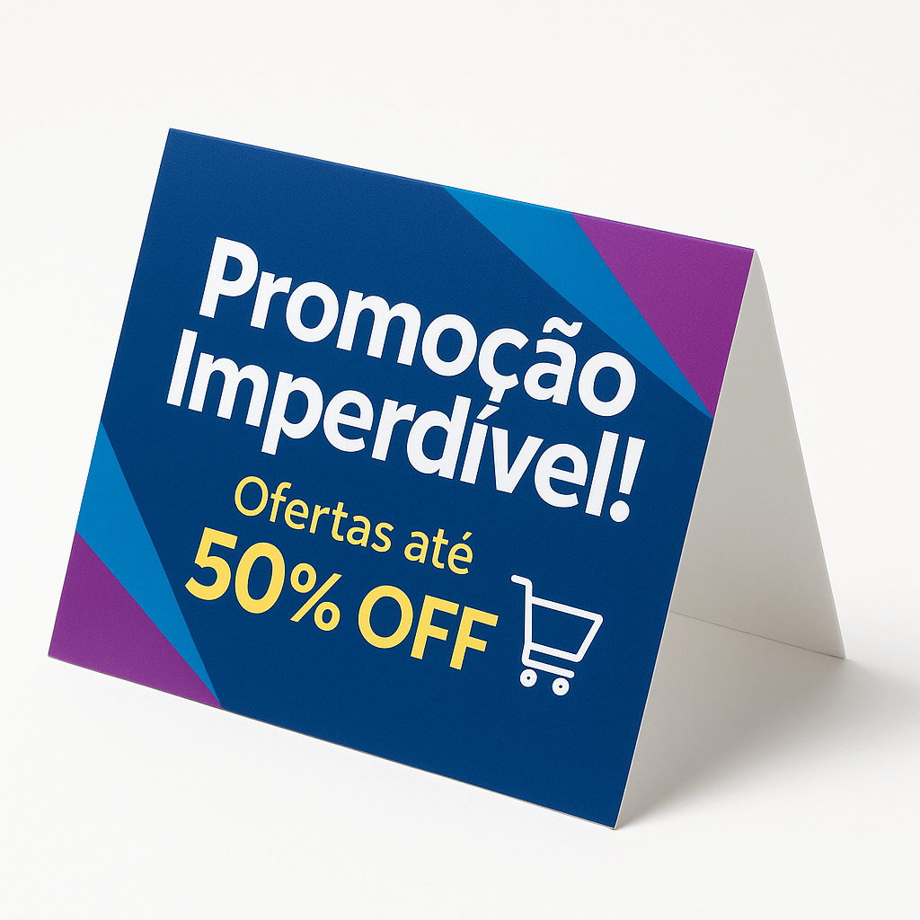 Seja para destacar preços, instruções, cardápios ou simplesmente reforçar a identidade da sua marca, o Display com Dobra PS 3 mm é a solução prática e elegante que coloca sua comunicação no lugar certo — bem na linha de visão do cliente.